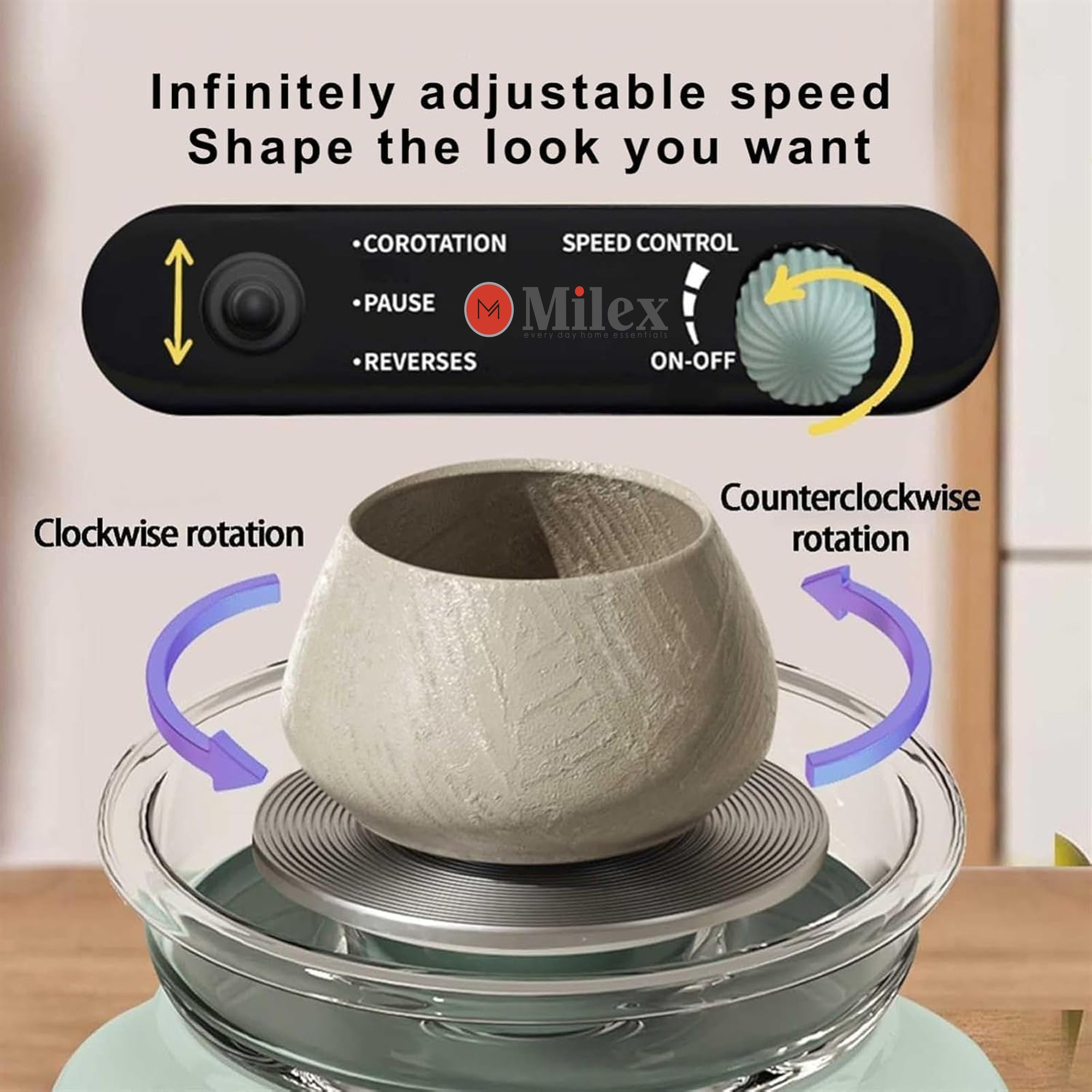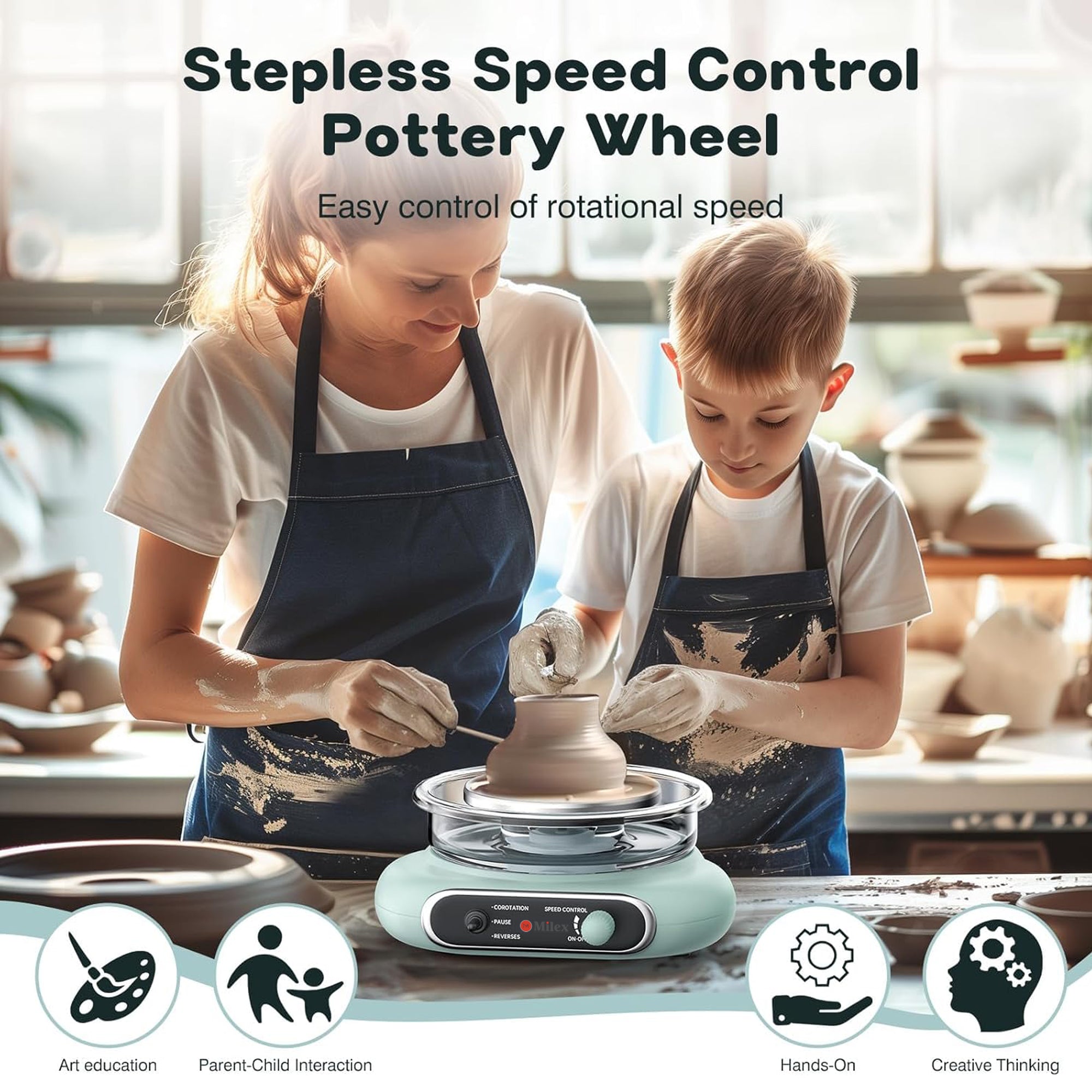 The stepless control system allows you to adjust the clay wheel’s speed smoothly and precisely, giving you full control over your creations. -